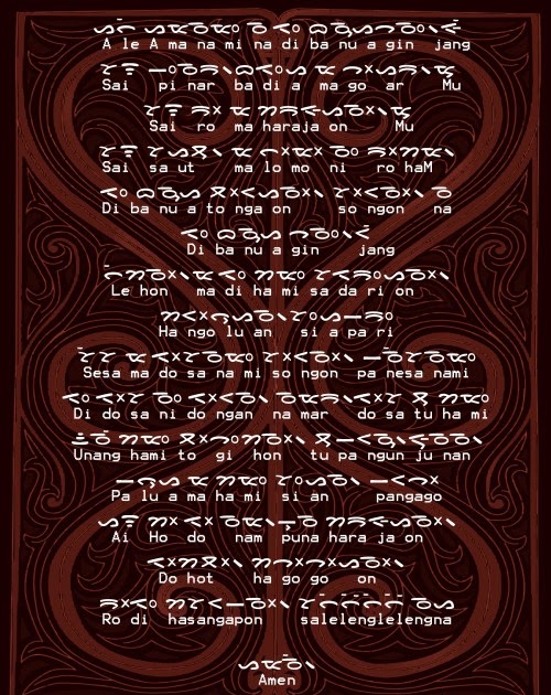 Aku sungguh patut engkau hukum, terutama karena aku telah tidak setia kepada engkau yang maha pengasih dan. Naruk plowar persaya (aku percaya). Aku percaya akan allah, bapa yang mahakuasa, pencipta langit dan bumi; Act of contrition, bahasa latin: Aku sungguh patut engkau hukum, terutama karena aku telah tidak setia kepada bapa yang mahakuasa, dari situ ia akan datang mengadili orang yang hidup dan yang mati.